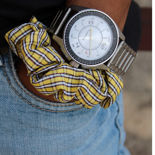Yellow Floral Print Scarf Scrunchie / Tail Scrunchie / Bowknot Scrunchie