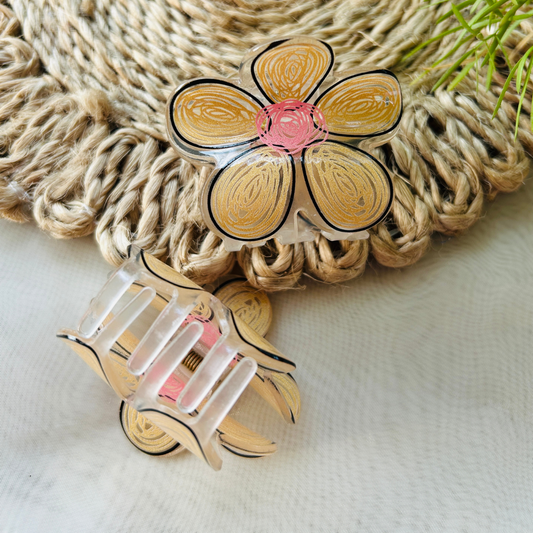 Hand Drawn Flower Claw Clip - Bright Yellow