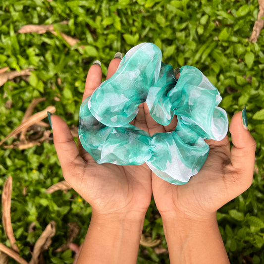 Green Tie Dye Organza Scrunchie