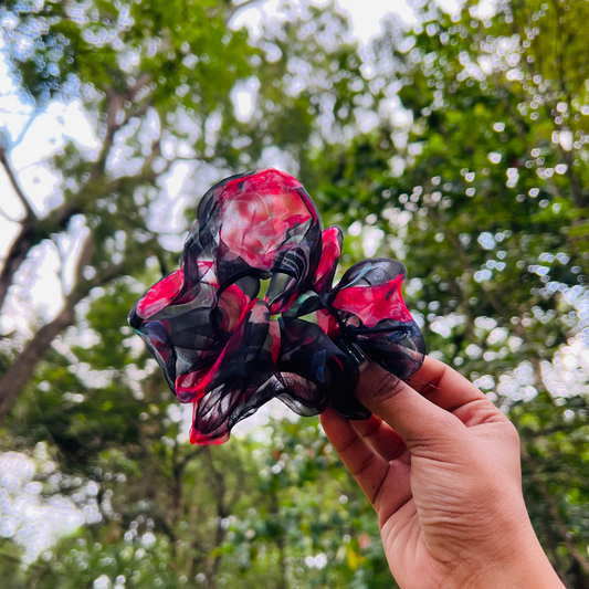 Black Floral Organza Scrunchie